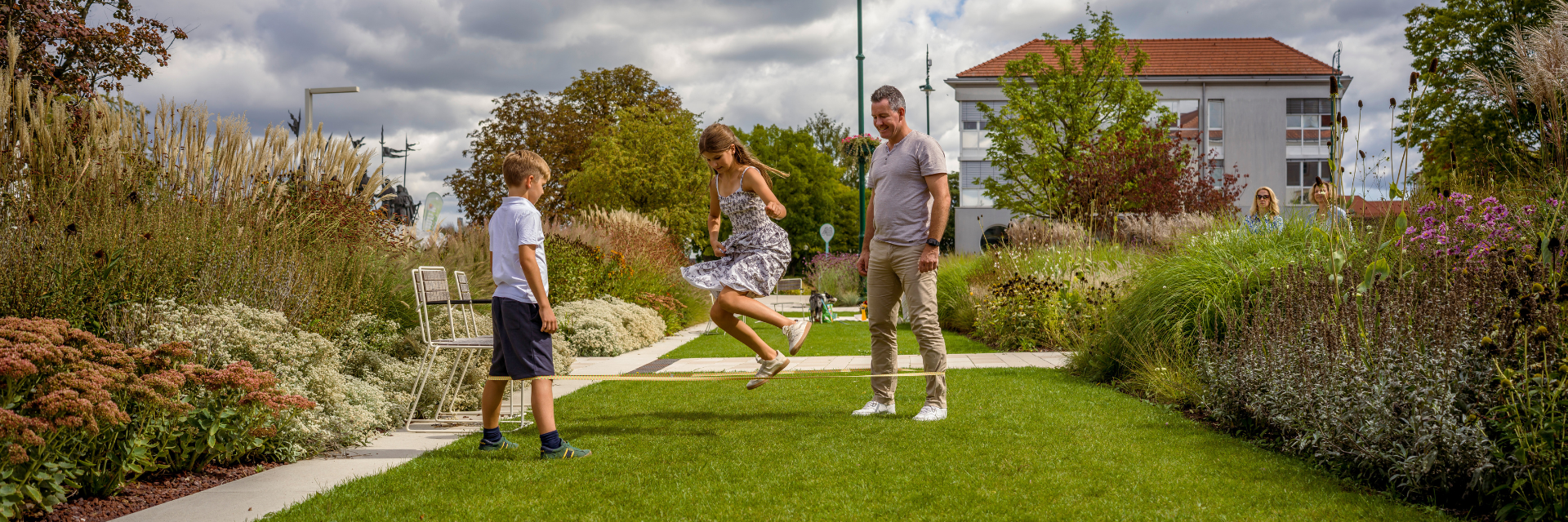 . Hinweis: Für die Nutzung des Abenteuerspielplatzes der Garten Tulln muss Eintritt bezahlt werden.