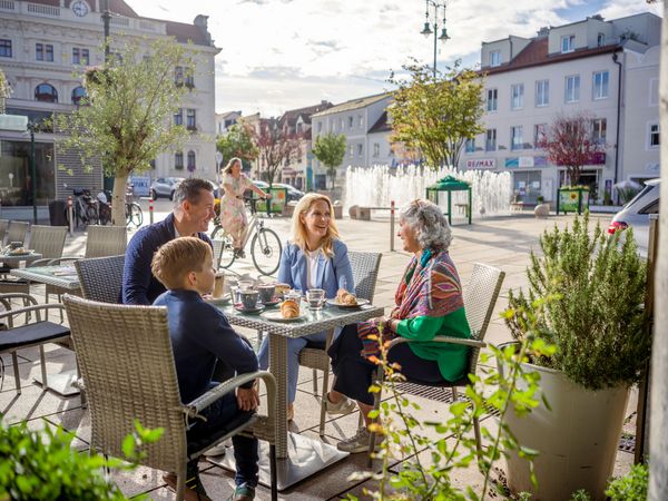 Am Ende der Rad-Erlebnistour oder auch zwischendurch lohnt sich ein Abstecher zu Tullns historischem Hauptplatz – zum Essen und Trinken in einem der zahlreichen Gastronomiebetriebe, für ein Eis oder auch für den Wasserspiel-Spaß beim Brunnen. Schon während der Tour gibt es mehrere Einkehrmöglichkeiten.